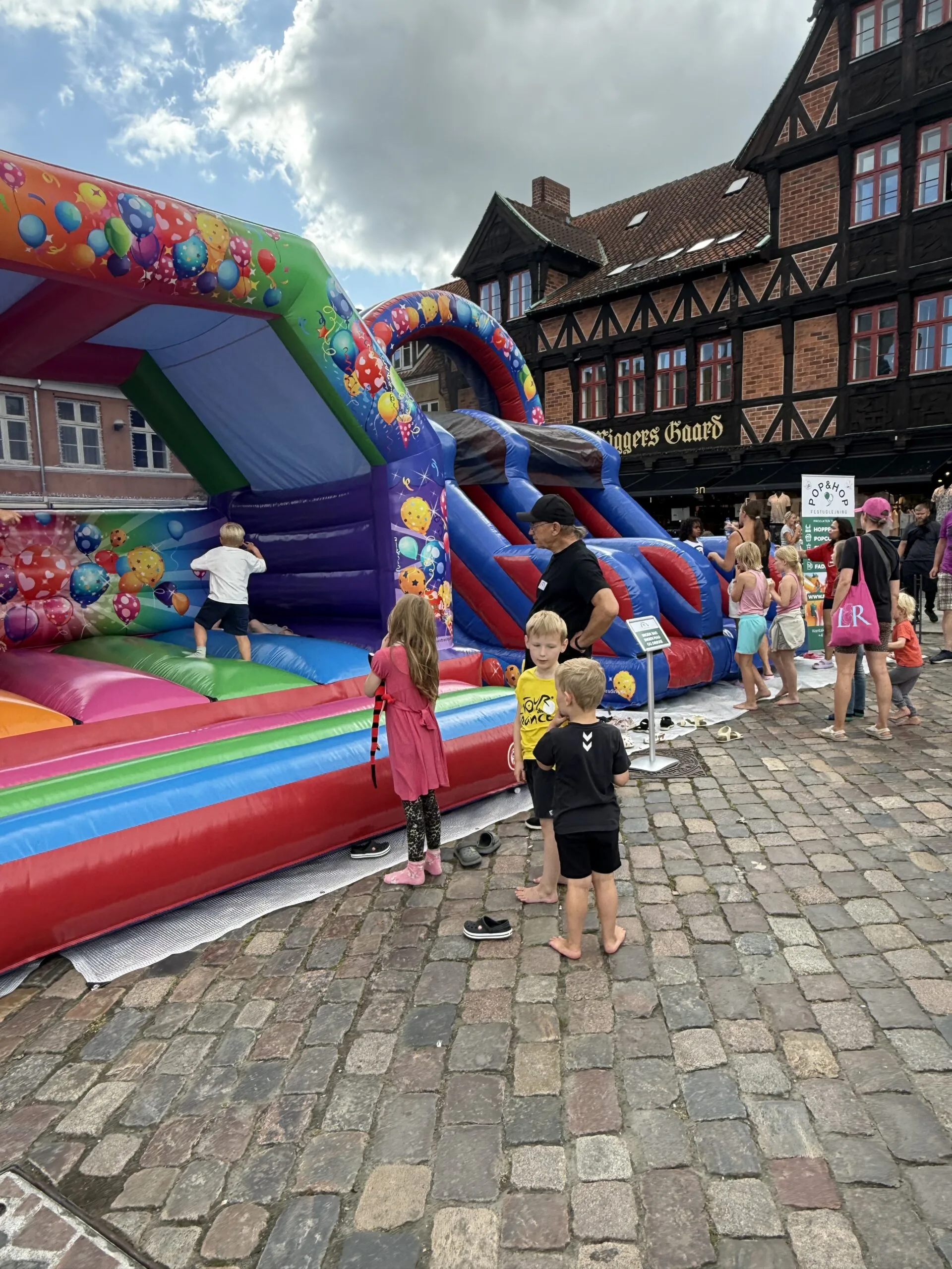 Pop & Hop ruller ind med hele pakken: 2 store hoppeborge, pølsevogn, slush ice, popcorn, candyfloss, baconsnacks – og ikke mindst en sæbeboblemaskine med røg-effekter, der skaber ægte feststemning.